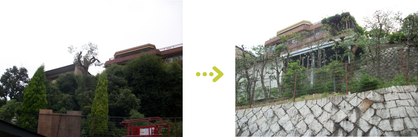 技術不足な植木屋に依頼しており、丁寧な剪定が行われていなかった樹木を強剪定